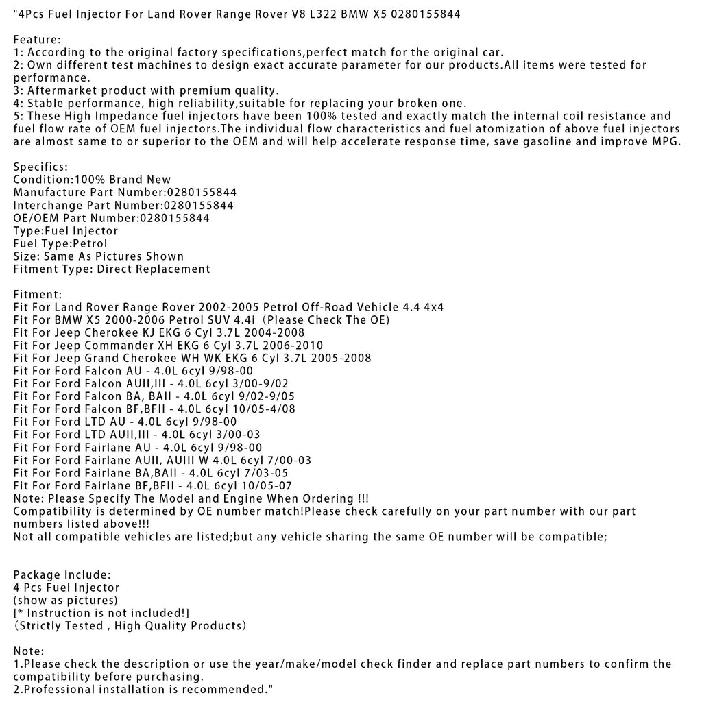 4Pcs Fuel Injector For Land Rover Range Rover V8 L322 BMW X5 0280155844