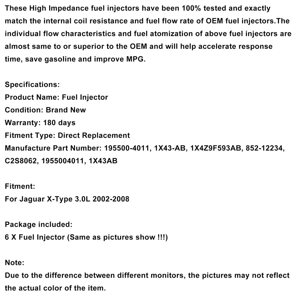 6PCS Fuel Injector 1X43-AB Fit Jaguar X-Type 3.0L 2002-2008 V6 2.5L 1955004011