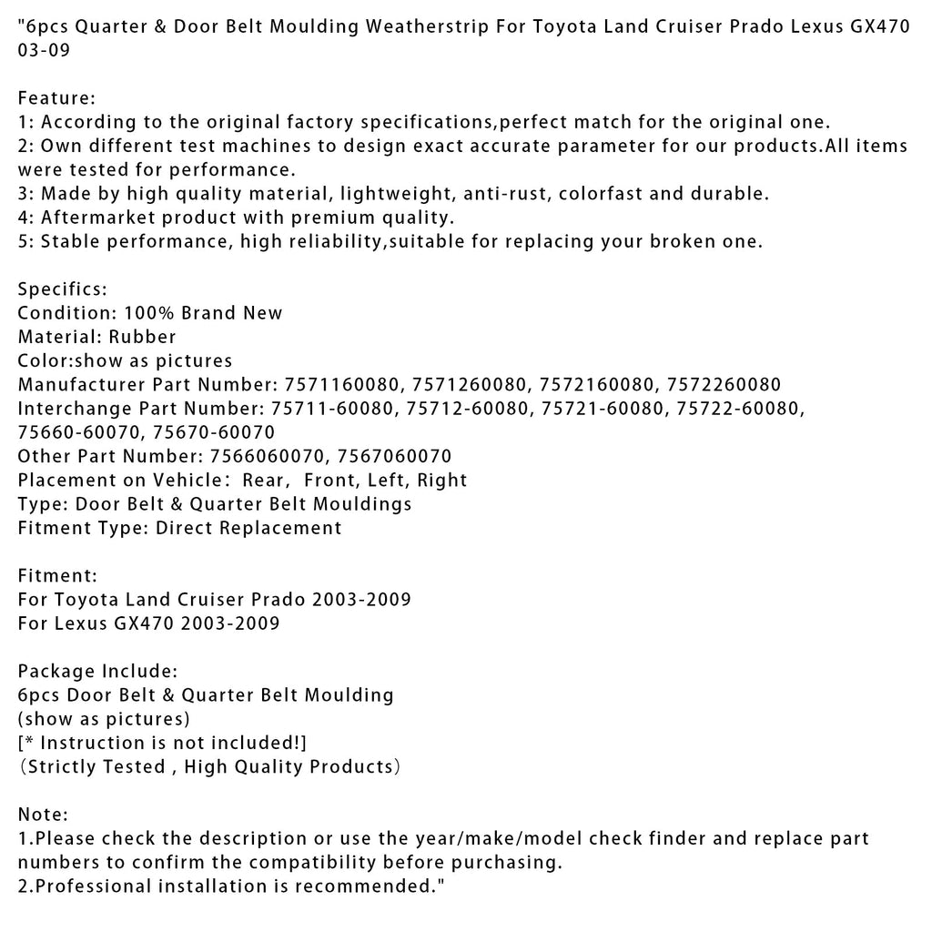 6pcs Quarter & Door Belt Moulding Weatherstrip For Toyota Land Cruiser Prado Lexus GX470 2003-2009