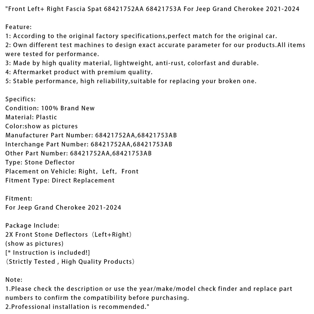 Front Left+ Right Fascia Spat 68421752AA 68421753A For Jeep Grand Cherokee 2021-2024