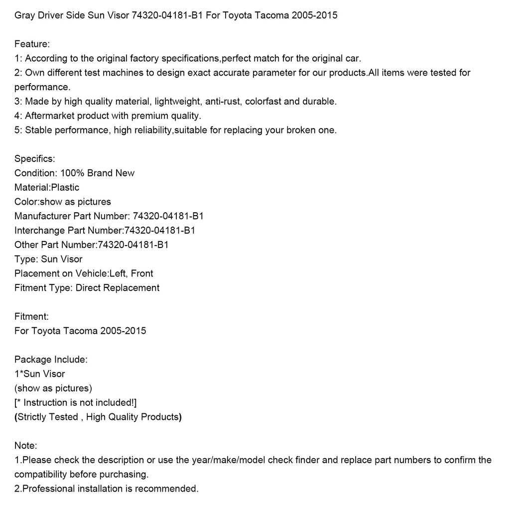 Gray Left Side Sun Visor Fit For Toyota Tacoma 2005-2015 74320-04181-B1