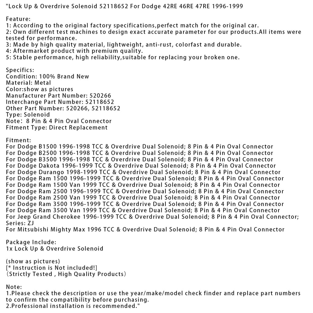 Lock Up & Overdrive Solenoid 52118652 Fit For Dodge 42RE 46RE 47RE 1996-1999?