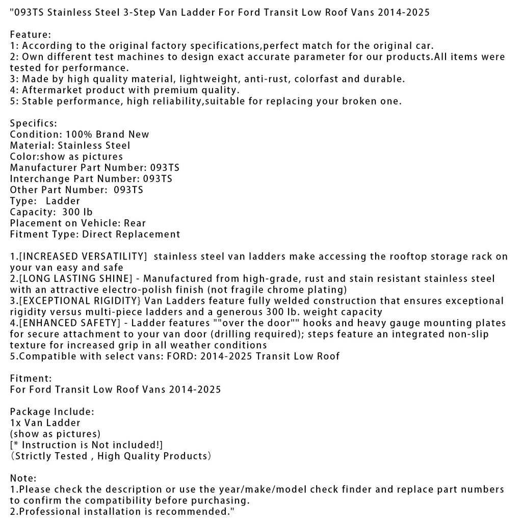 093TS Stainless Steel 3-Step Van Ladder Fit For Ford Transit Low Roof Vans 2014-2025?