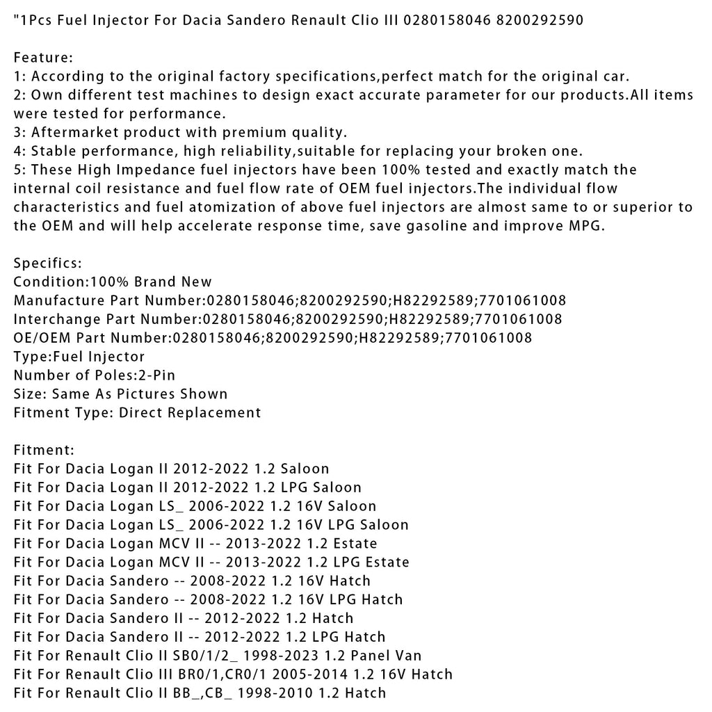 1Pcs Fuel Injector For Dacia Sandero Renault Clio III 0280158046 8200292590