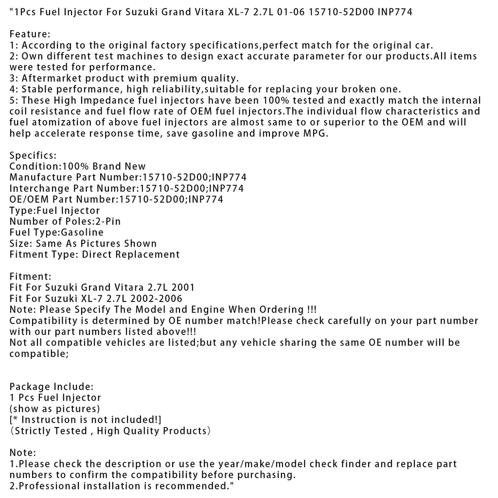 1Pcs Fuel Injector For Suzuki Grand Vitara XL-7 2.7L 01-06 15710-52D00 INP774