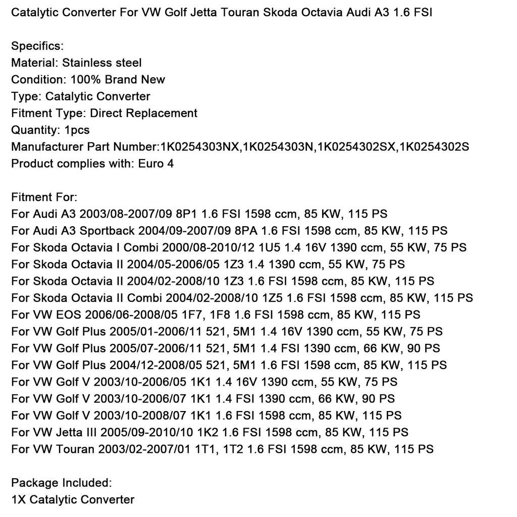 Catalytic Converter For VW Golf Jetta Touran Skoda Octavia Audi A3 1.6 FSI