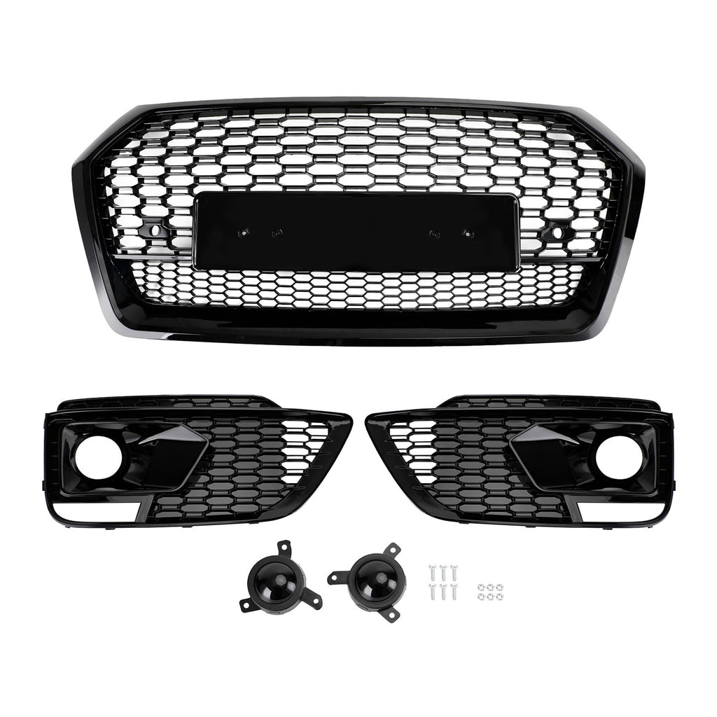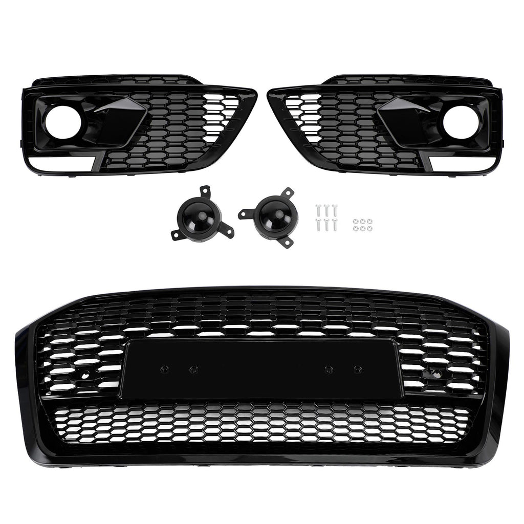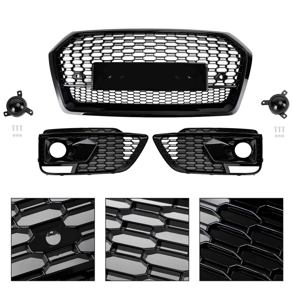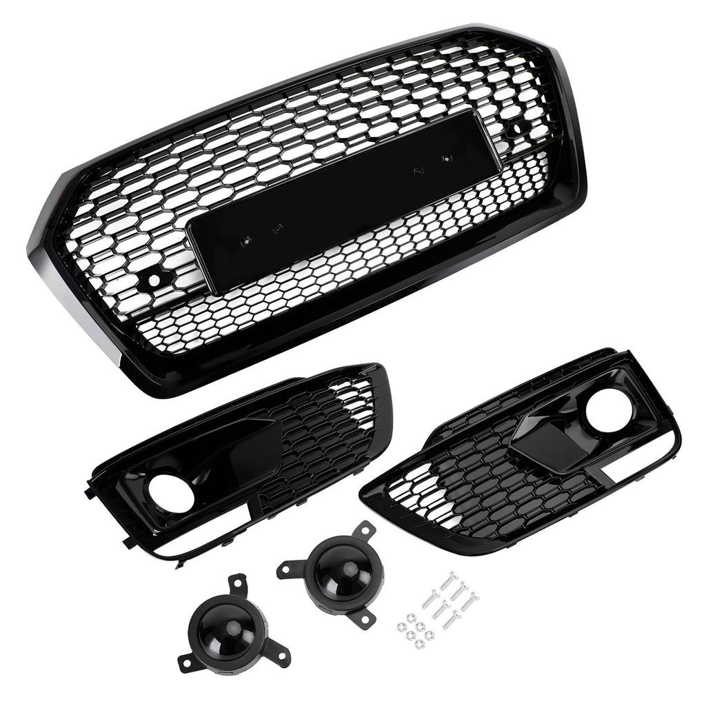 2018-2020 Audi Q5 SQ5 RSQ5 Front Honeycomb Mesh Grill + Fog Lamp Grille Generic
