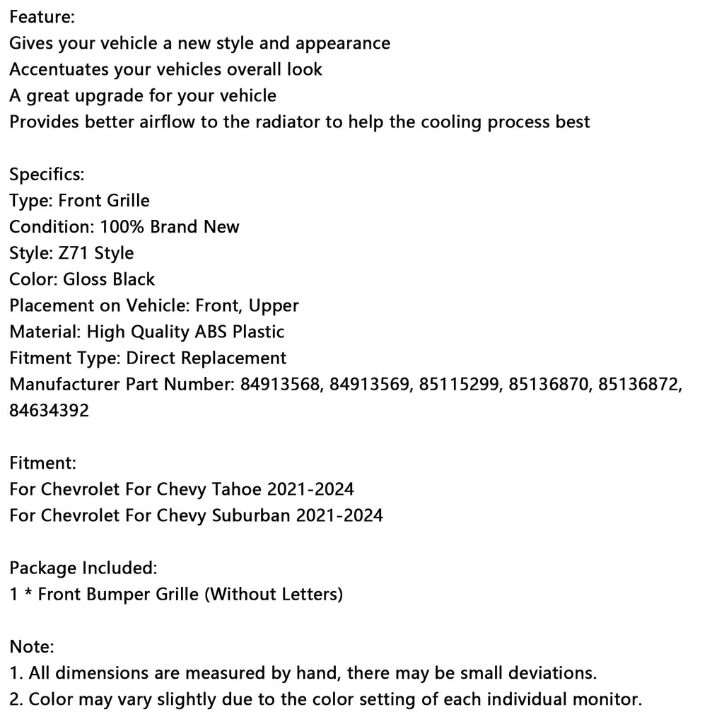 2021-2024 Chevrolet For Chevy Suburban Z71-Look Front Bumper Grille Black
