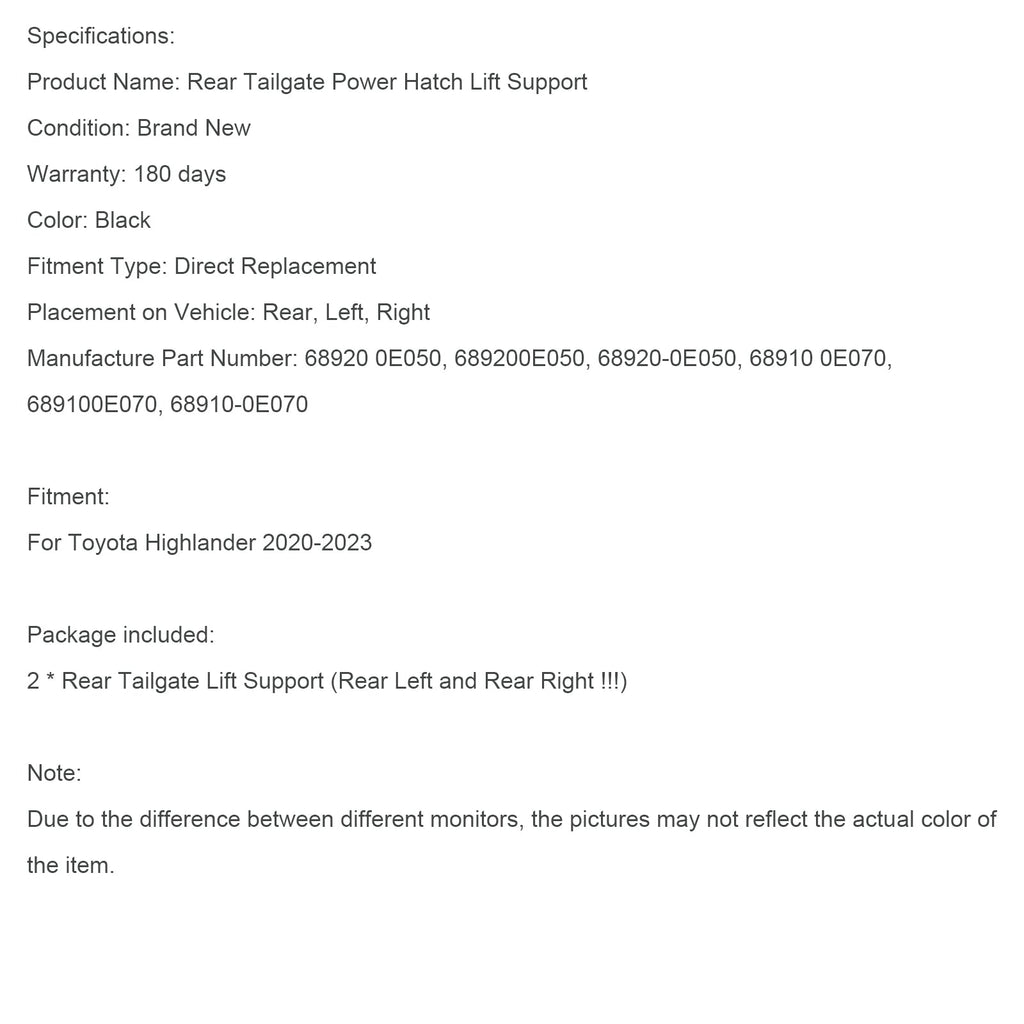 2PCS Electric Tailgate Lift 68910-0E070 Fit Toyota Highlander 2020-2023