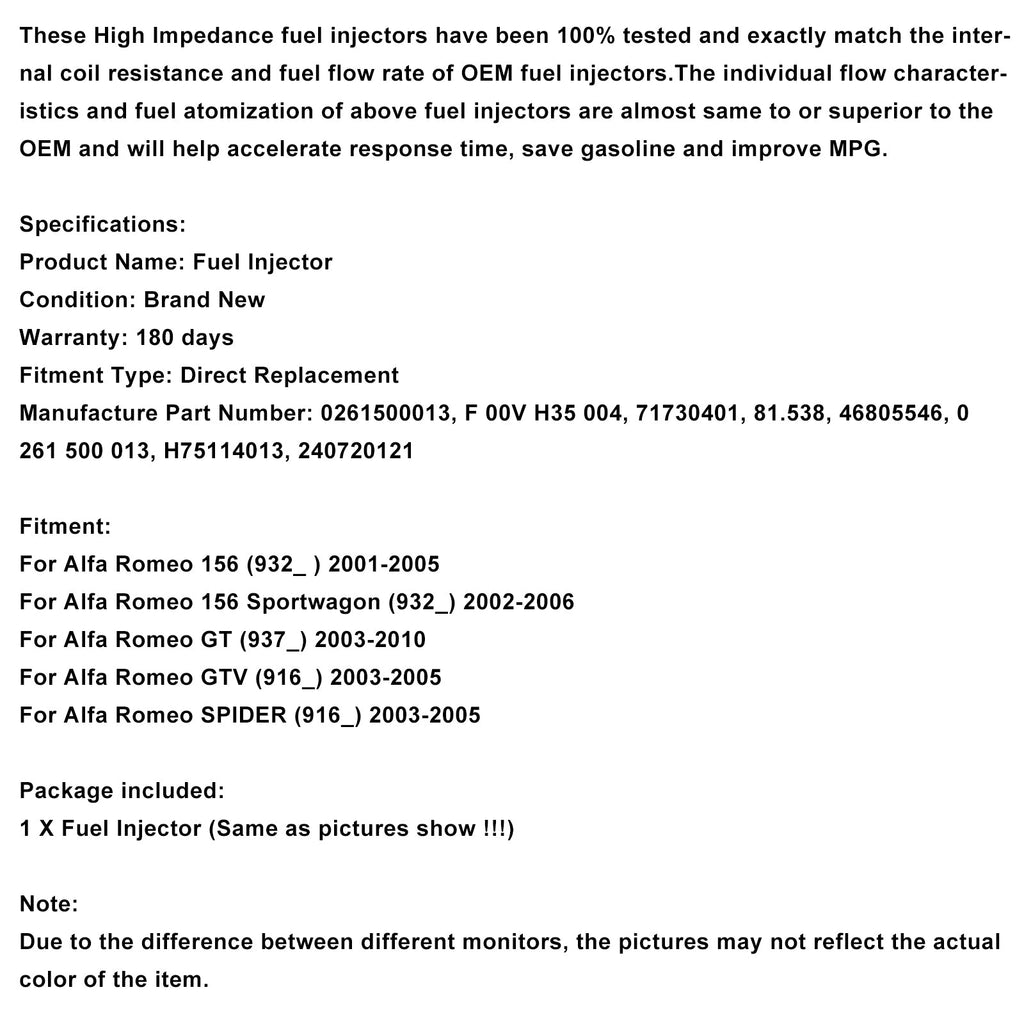 4PCS Fuel Injector 0261500013 Fit Alfa Romeo 156 932 GT 937 GTV Spider 916 2.0