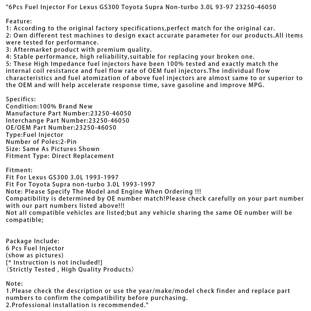 6Pcs Fuel Injector For Lexus GS300 Toyota Supra Non-turbo 3.0L 93-97 23250-46050