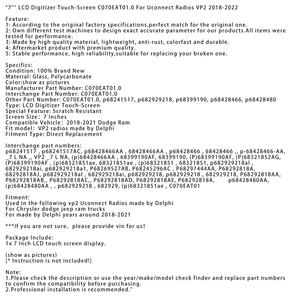 7" LCD Digitizer Touch-Screen C070EAT01.0 For Uconnect Radios VP2 2018-2022