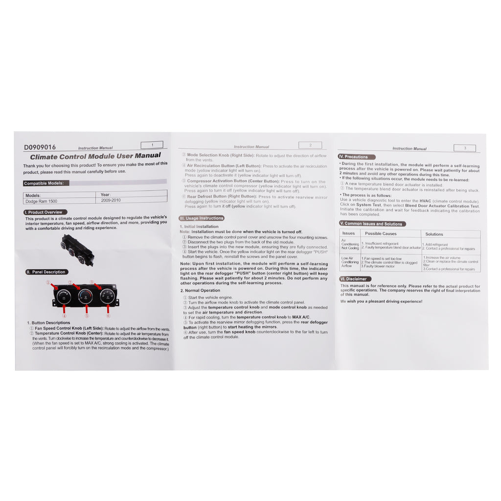 2009-2010 Dodge Ram 1500 AC Heater Climate Temperature Control Module 55056826AB