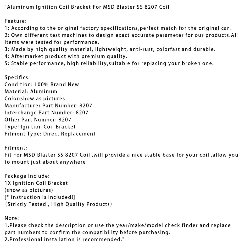Aluminum Ignition Coil Bracket For MSD Blaster SS 8207 Coil