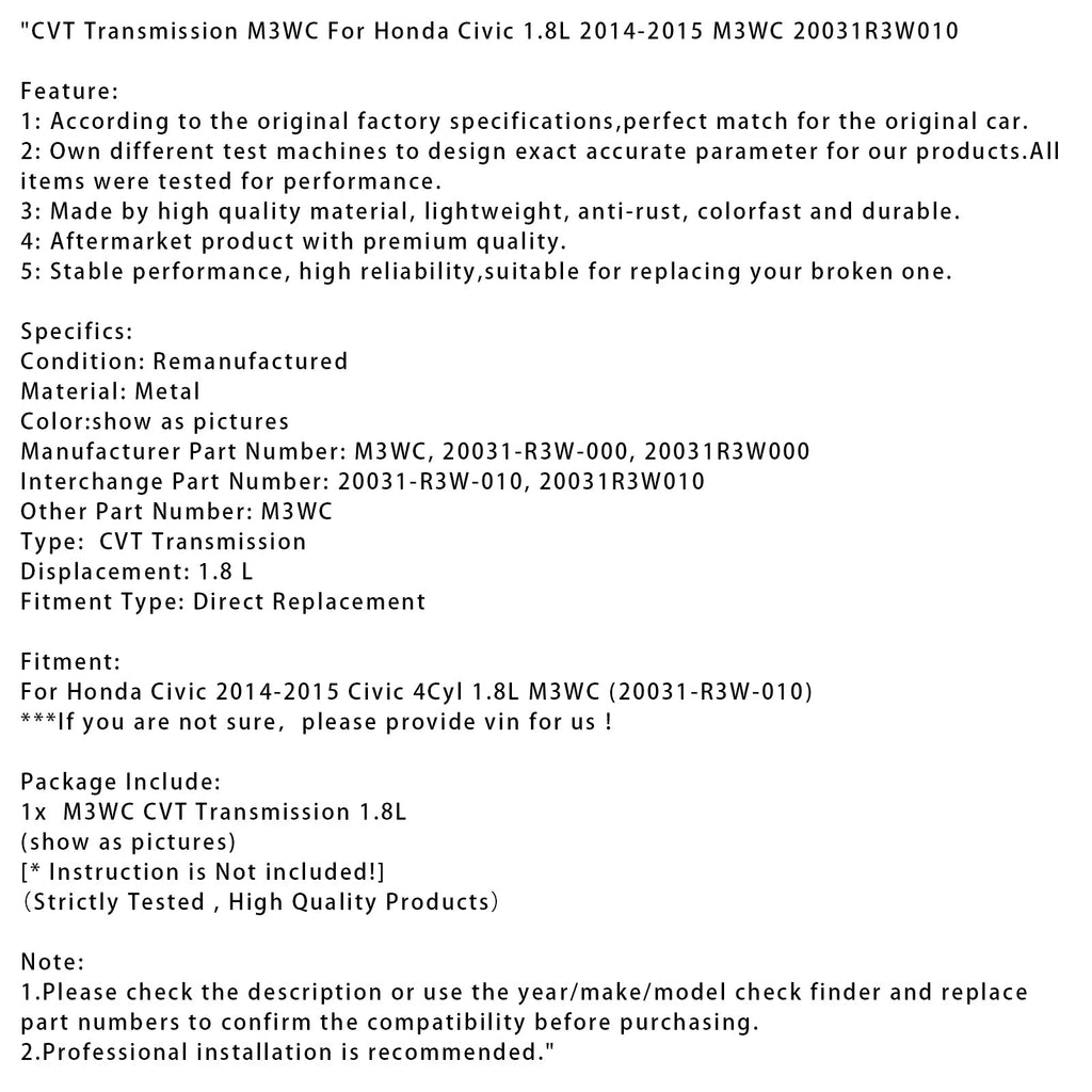 CVT Transmission M3WC For Honda Civic 1.8L 2014-2015 M3WC 20031R3W010