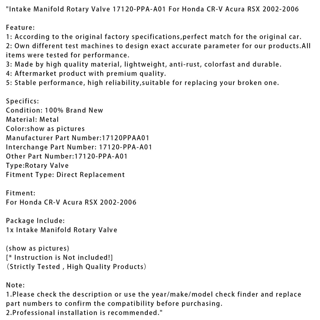 Intake Manifold Rotary Valve 17120-PPA-A01 Fit For Honda CR-V Acura RSX 2002-2006