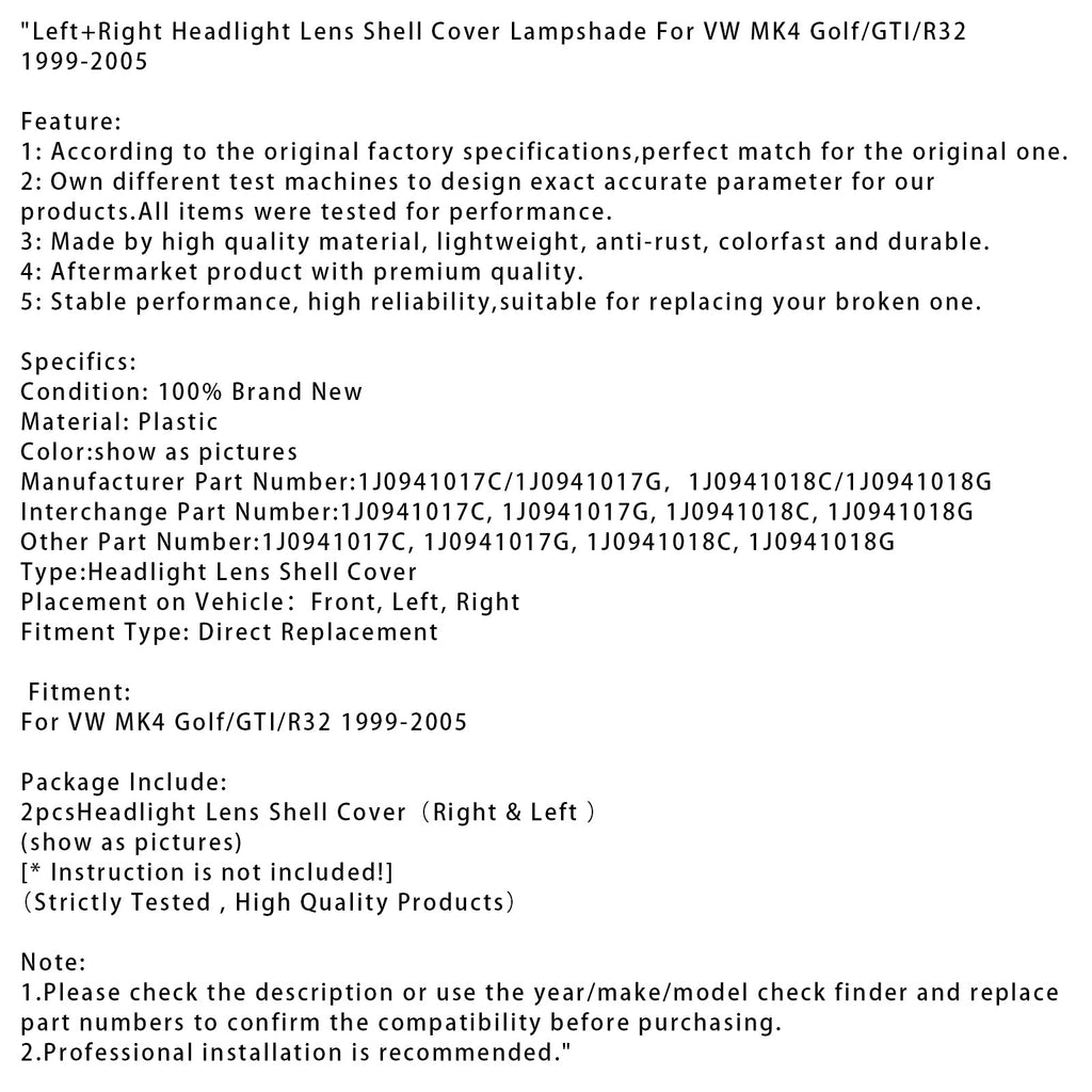 Left+Right Headlight Lens Shell Cover Lampshade For VW MK4 Golf/GTI/R32 1999-2005