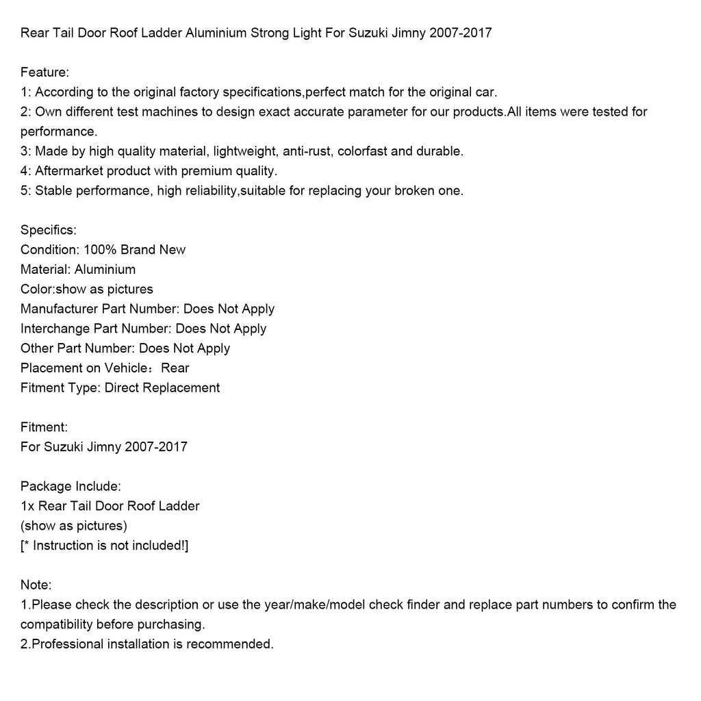 2007-2017 Suzuki Jimny Rear Tail Door Roof Ladder Aluminium Strong Light