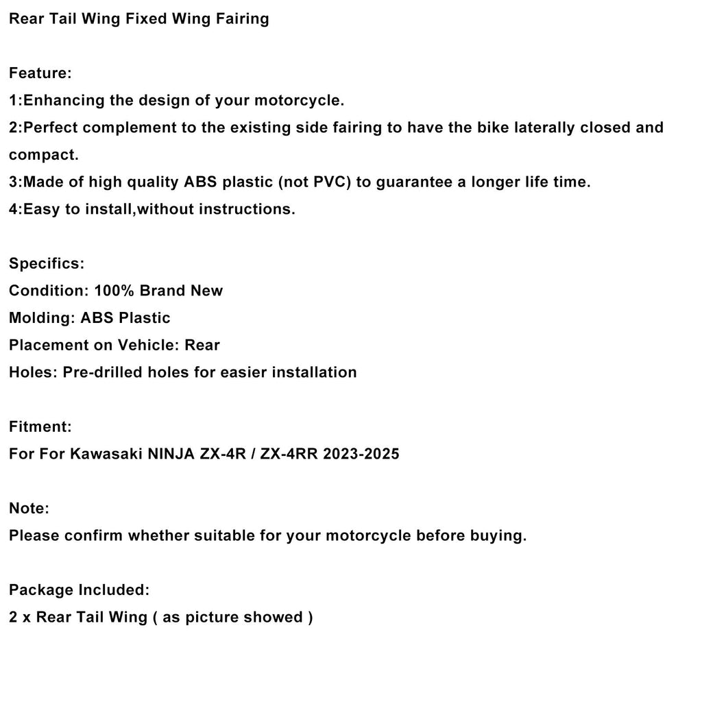 Rear Tail Wing Fixed Wing Fairing Fit For Kawasaki NINJA ZX-4R ZX-4RR 2023-2025