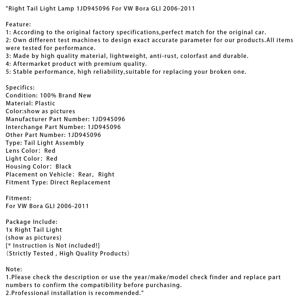 Right Tail Light Lamp 1JD945096 For VW Bora GLI 2006-2011
