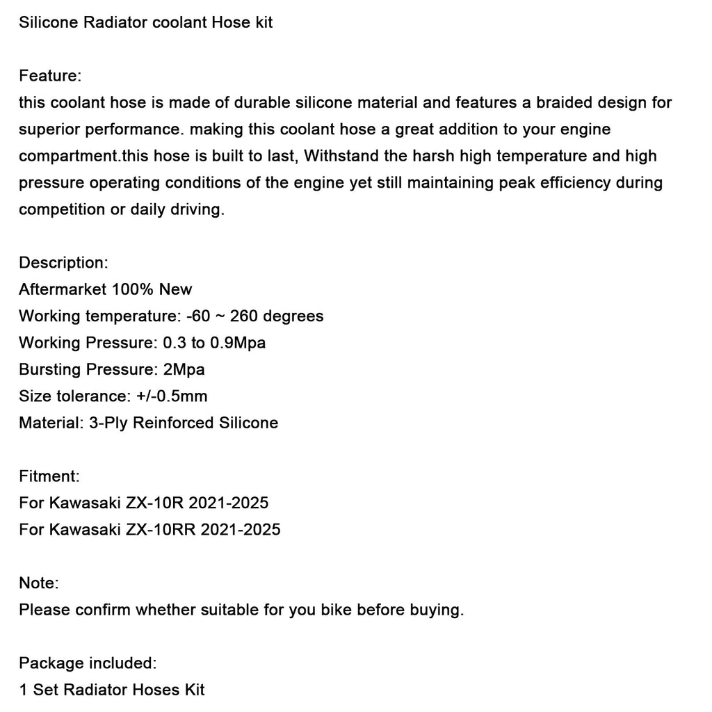 Silicone Radiator coolant Hose kit Fit For Kawasaki ZX10R ZX-10RR 2021-2025