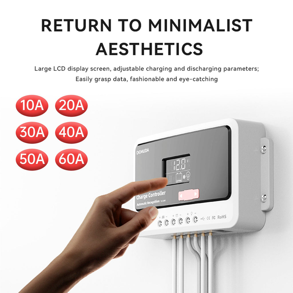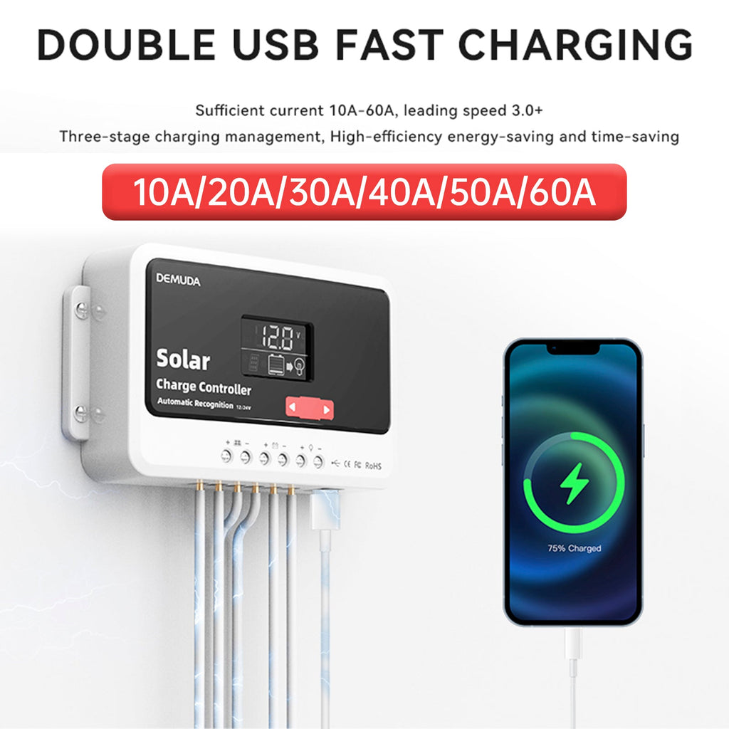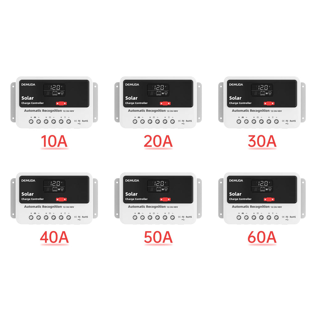 12V24V48V 10A/20A/30A/40A/50A/60A PWM Solar Controller Automatic Identification Solar Controller fit for Lead-Acid Lithium Battery Lithium Iron Phosphate Universal Photovoltaic Charger