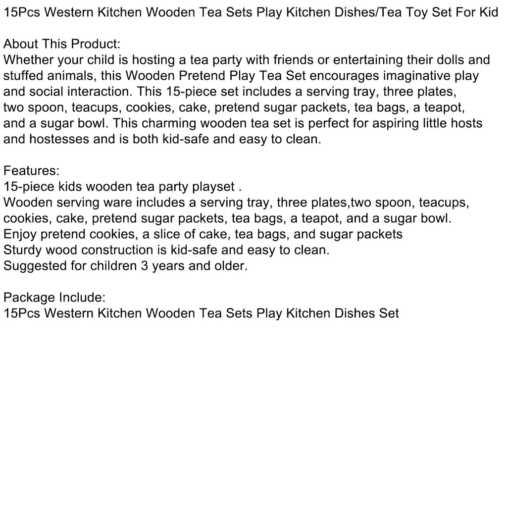 15Pcs Western Kitchen Wooden Tea Sets Play Kitchen Dishes Set
