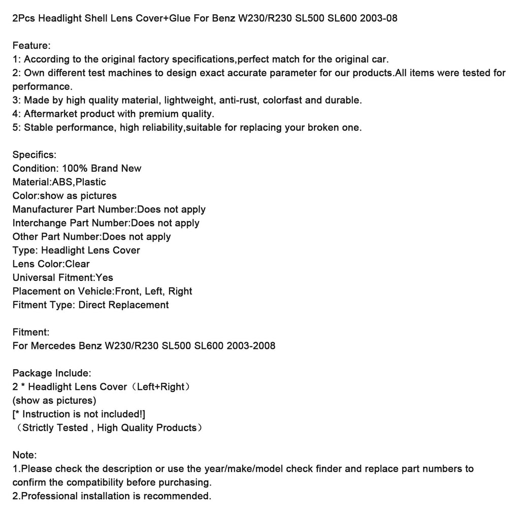 2Pcs Headlight Shell Lens Cover+Glue For Benz W230/R230 SL500 SL600 2003-2008