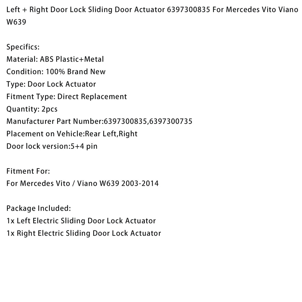 Left + Right Door Lock Sliding Door Actuator 6397300835 Fit For Mercedes Vito Viano W639