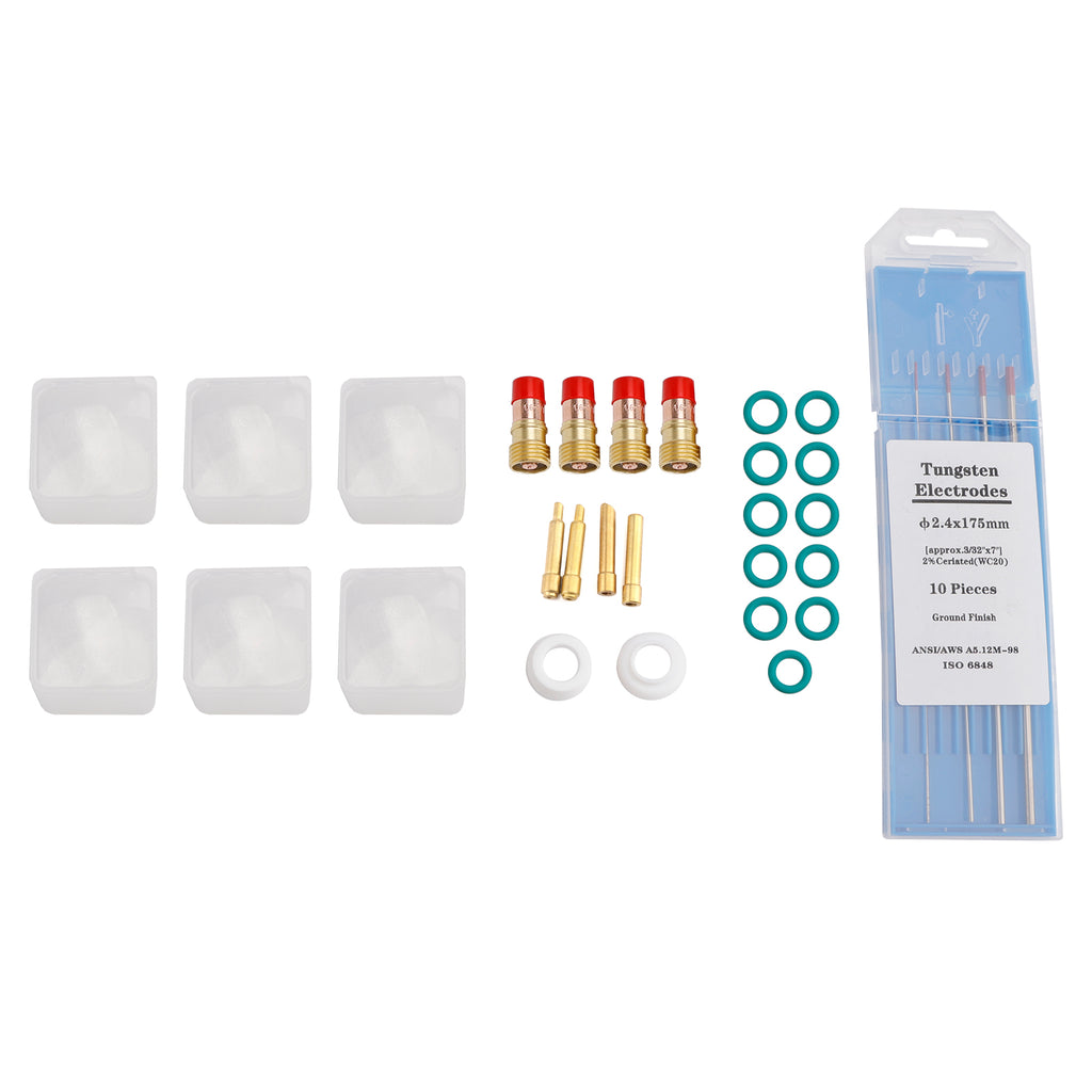 30Pcs TIG Welding Stubby Gas Lens Pyrex Cup Kit Fits For Tig WP-17/18/26 Torch