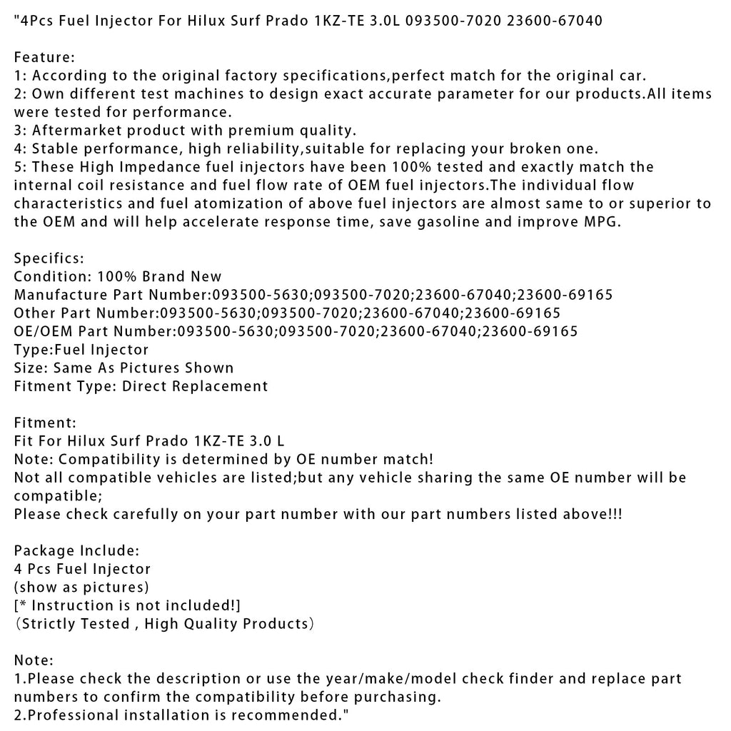 4Pcs Fuel Injector For Hilux Surf Prado 1KZ-TE 3.0L 093500-7020 23600-67040