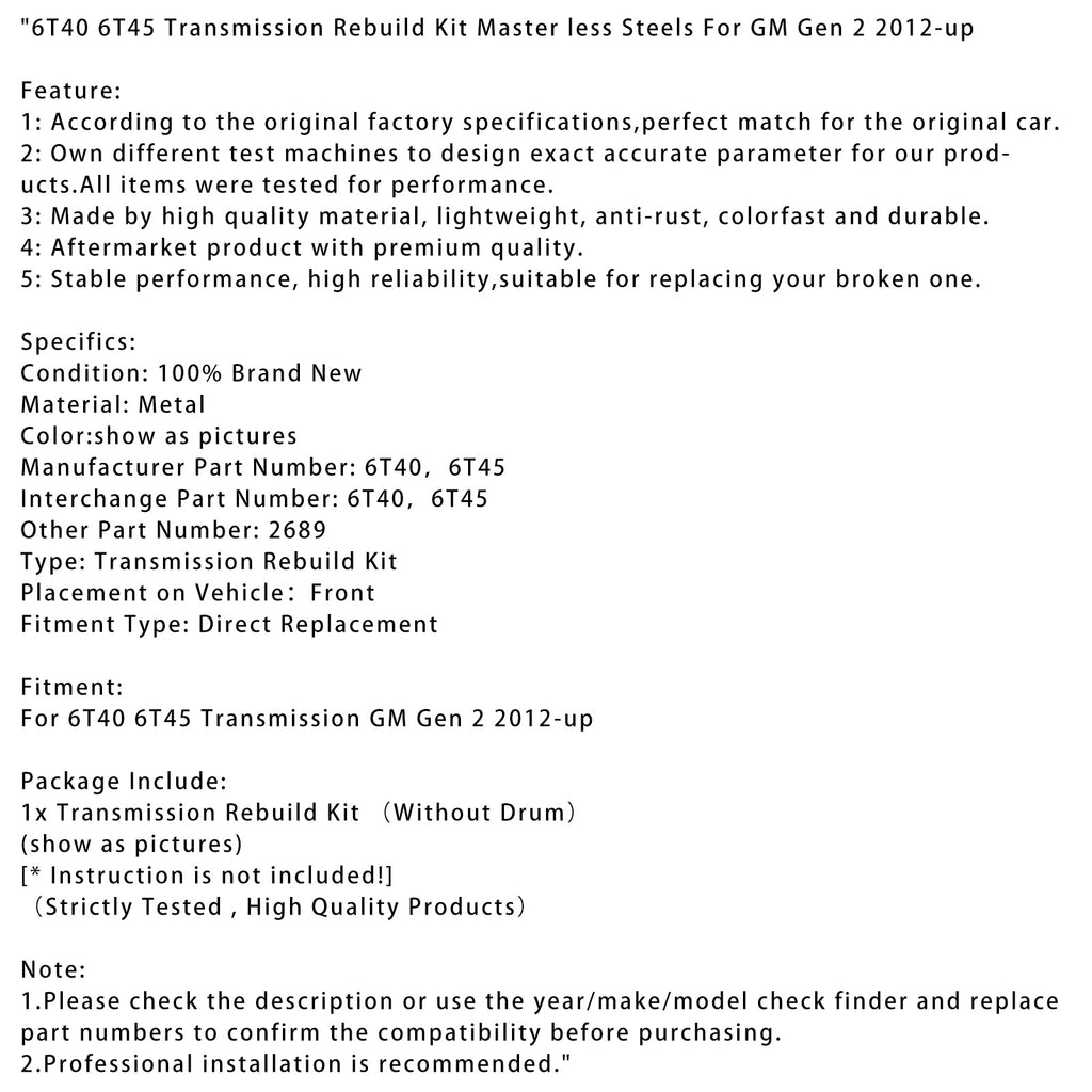 6T40 6T45 Transmission Rebuild Kit Master less Steels For GM Gen 2 2012-up