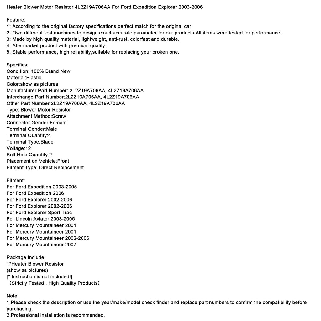 Heater Blower Motor Resistor 4L2Z19A706AA For Ford Expedition Explorer 2003-2006