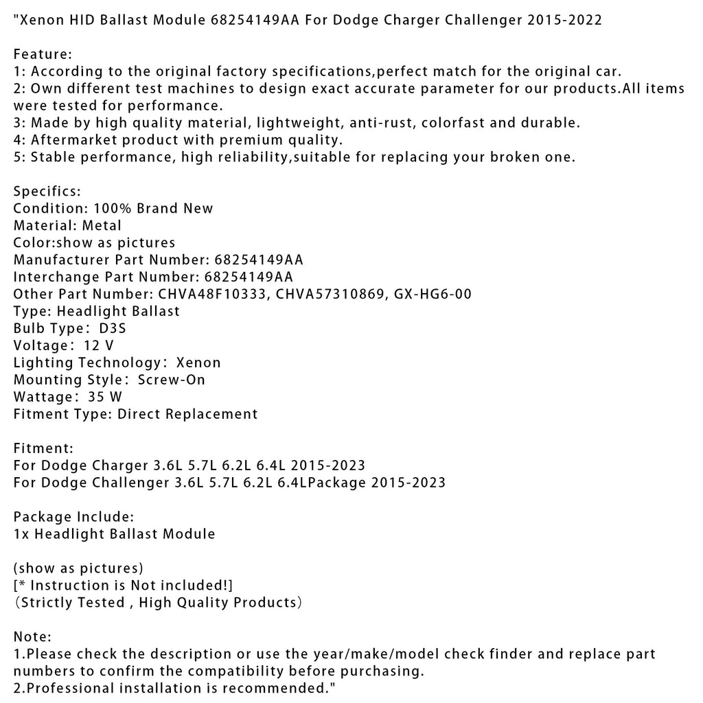 Xenon HID Ballast Module 68254149AA For Dodge Charger Challenger 2015-2022