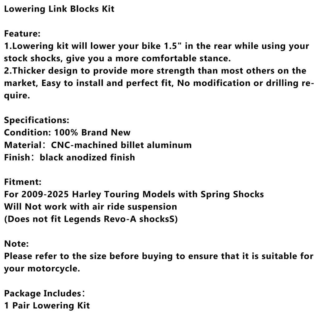 1.5" Lowering Link Blocks Kit For Touring Street Glide Road King Electra 2009-2025