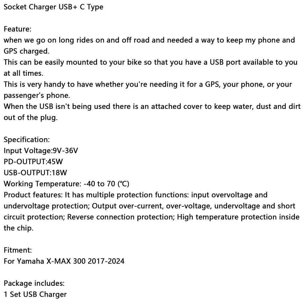 Socket Charger USB+ C Type Fit For Yamaha X-MAX 300 2017-2025