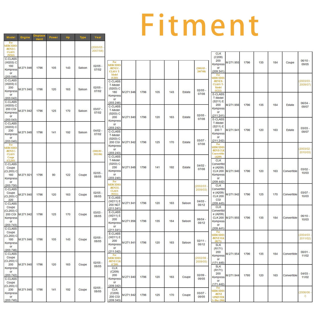 Fit For Mercedes-Benz CLK Convertible (A209) CLK 200 Compressor (209.442) M 271.940 Convertible 03/02-10/03