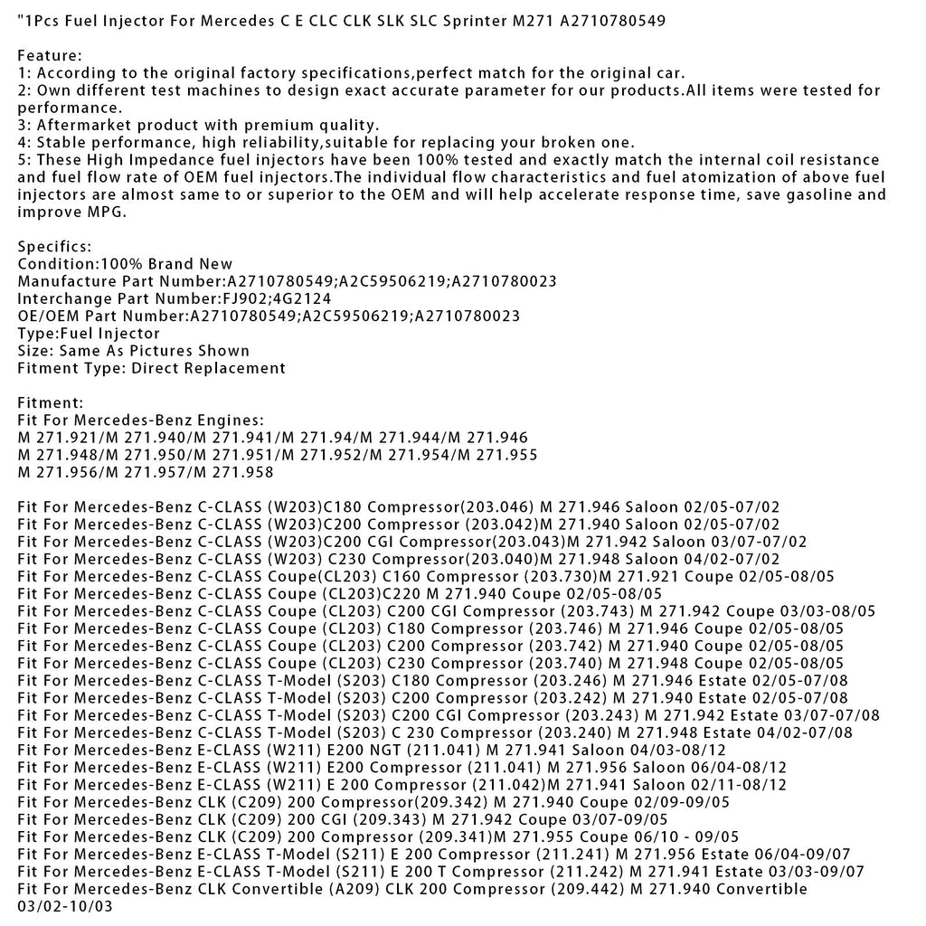 1Pcs Fuel Injector For Mercedes C E CLC CLK SLK SLC Sprinter M271 A2710780549