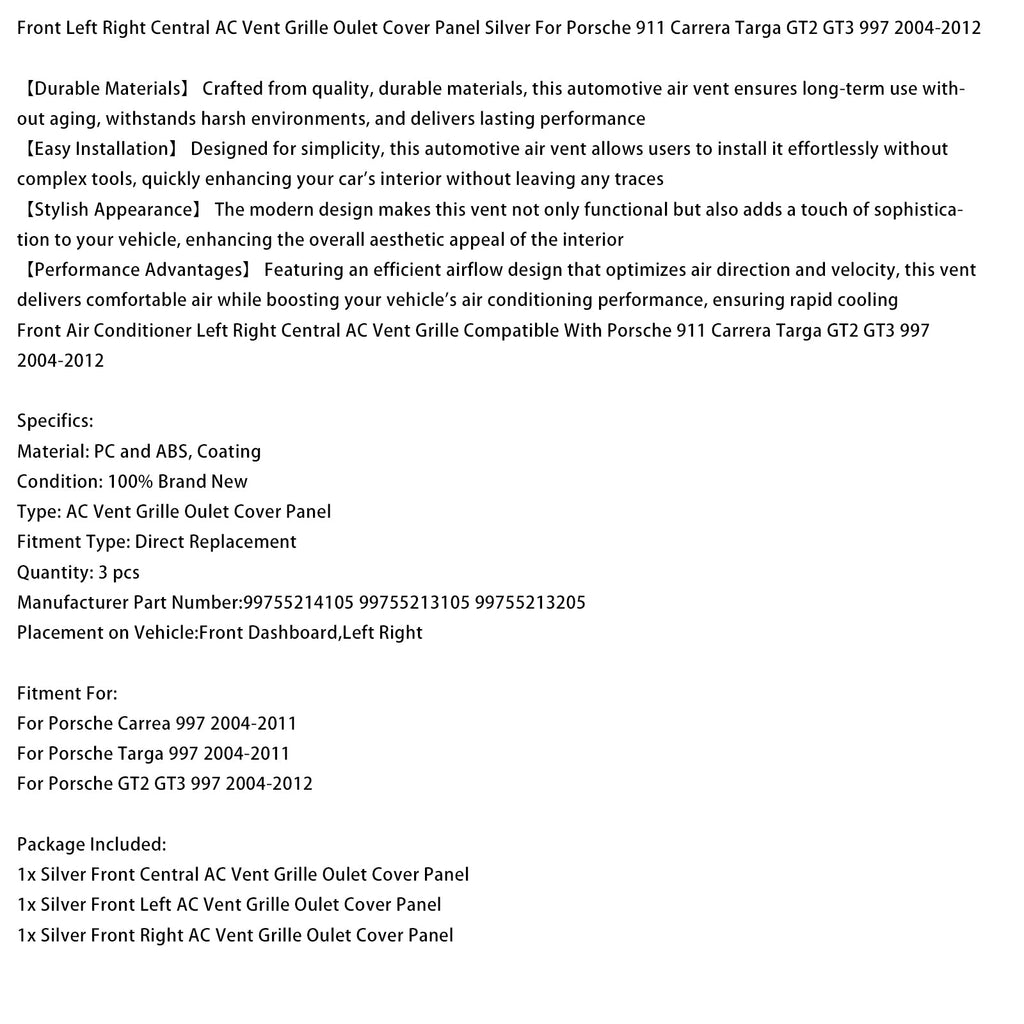 Front Left Right Central AC Vent Grille Oulet Cover Panel Silver Fit For Porsche 911 Carrera Targa GT2 GT3 997 2004-2012