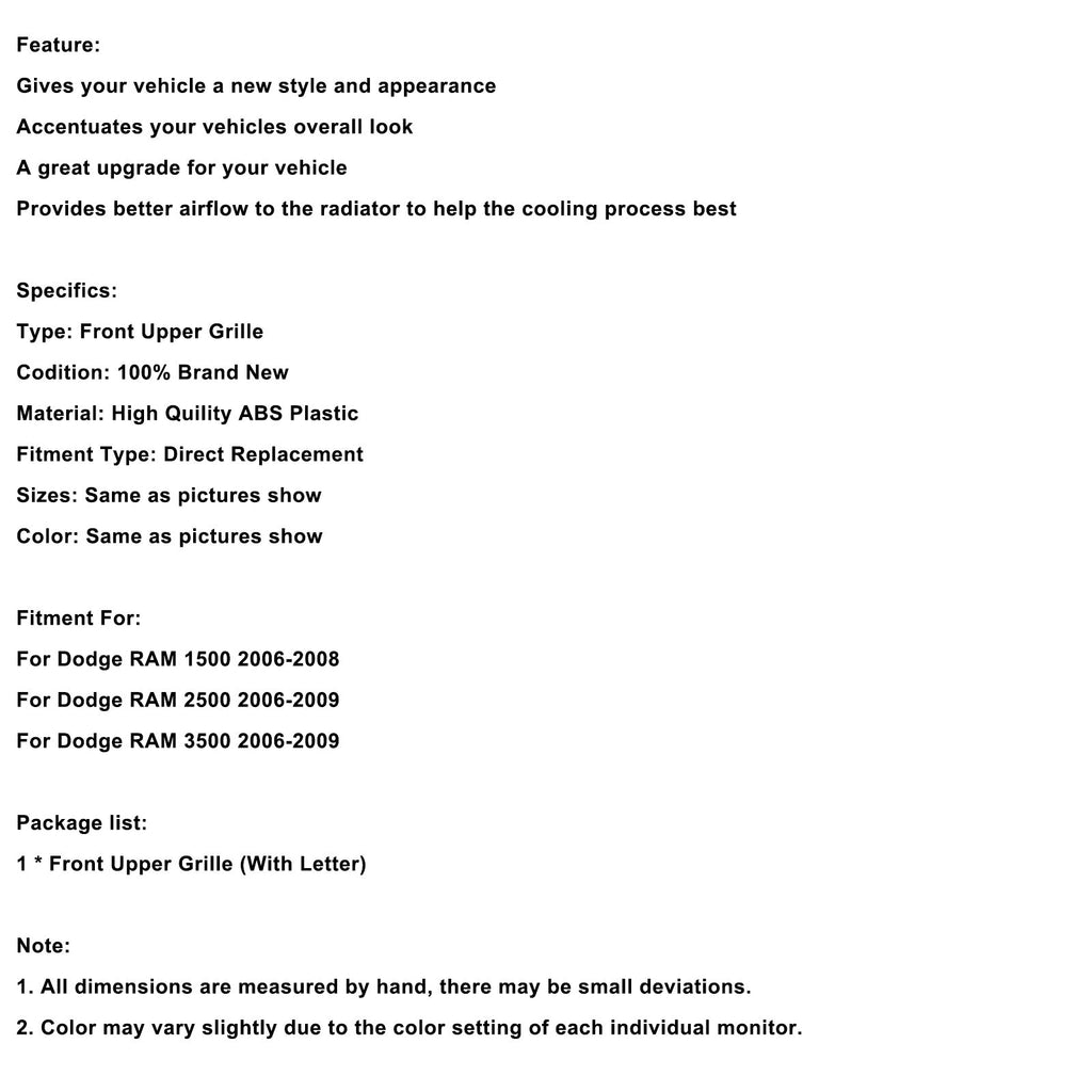 Front Bumper Grill Grille Fit For Dodge RAM 1500 2006-08 RAM 2500 3500 2006-2009