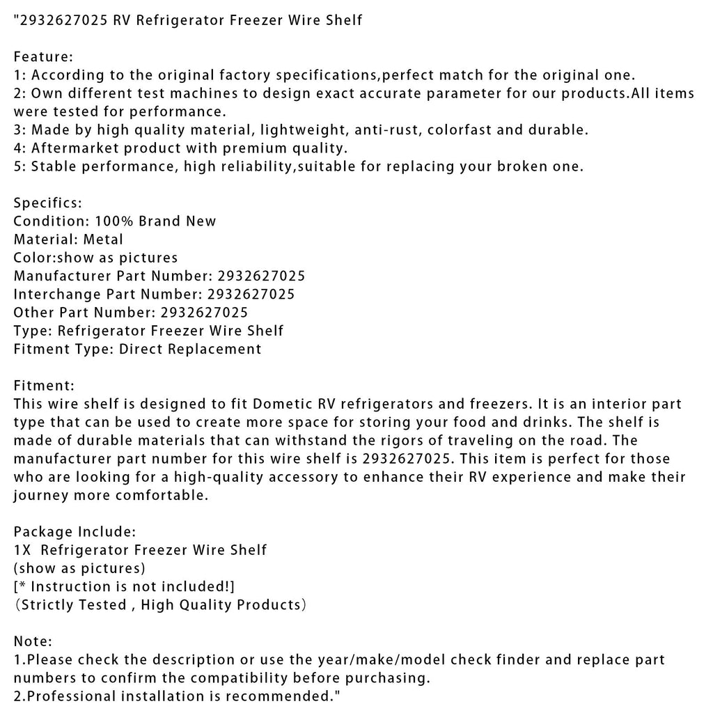 This wire shelf is designed to fit Dometic RV refrigerators and freezers. It is an interior part type that can be used to create more space for storing your food and drinks. The shelf is made of durable materials that can withstand the rigors of traveling on the road. The manufacturer part number for this wire shelf is 2932627025. This item is perfect for those who are looking for a high-quality accessory to enhance their RV experience and make their journey more comfortable.