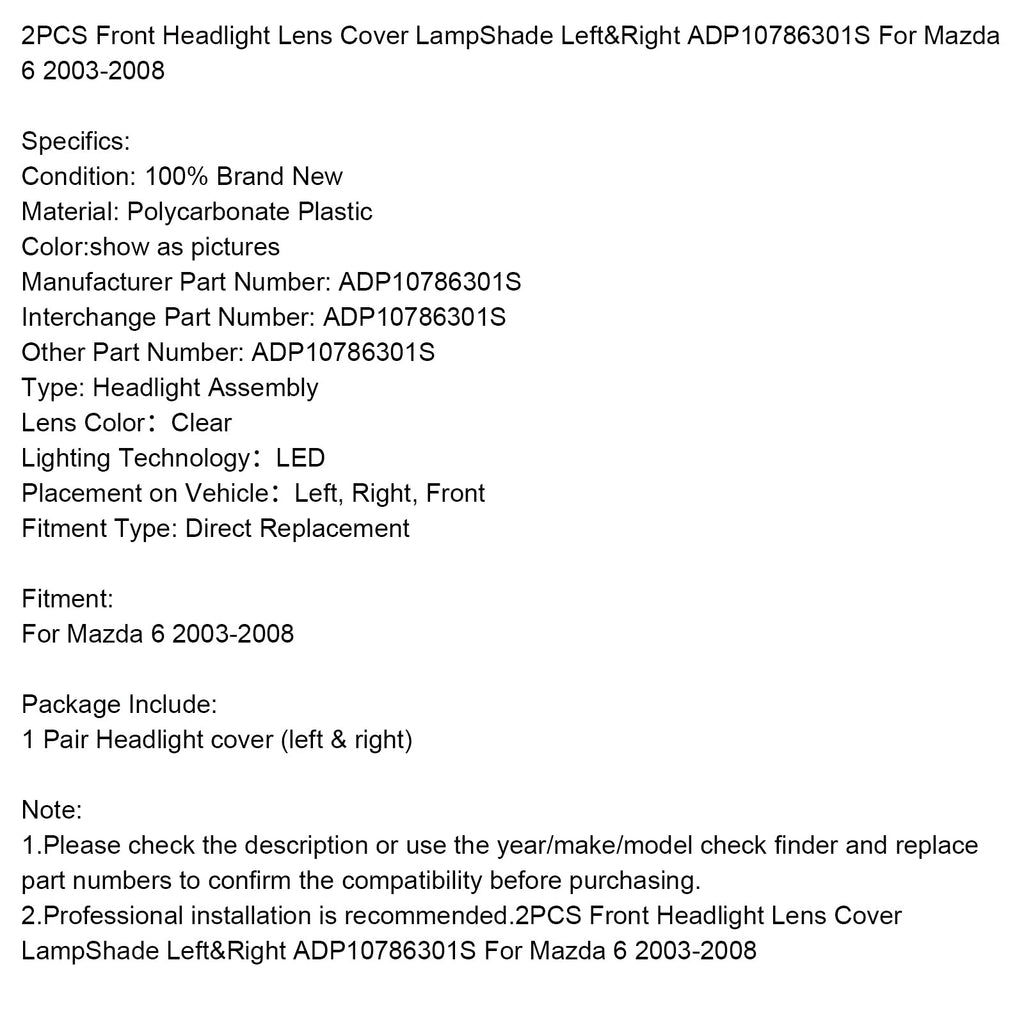 2PCS Front Headlight Lens Cover LampShade Left&Right ADP10786301S For Mazda 6 2003-2008