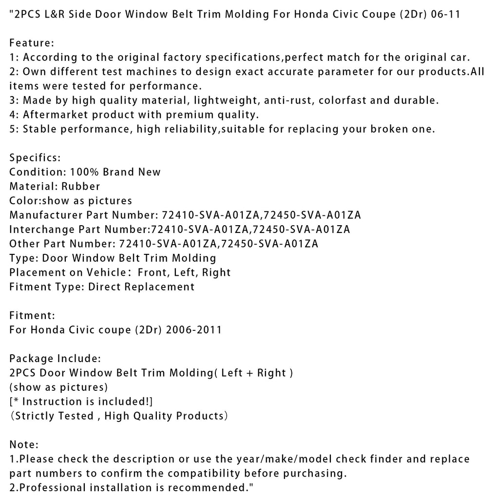 2PCS L&R Side Door Window Belt Trim Molding For Honda Civic Coupe (2Dr) 2006-2011