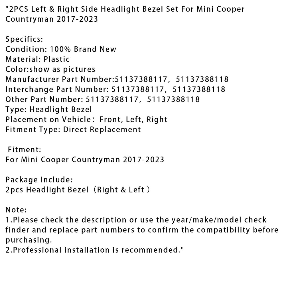 2PCS Left & Right Side Headlight Bezel Set For Mini Cooper Countryman 2017-2023