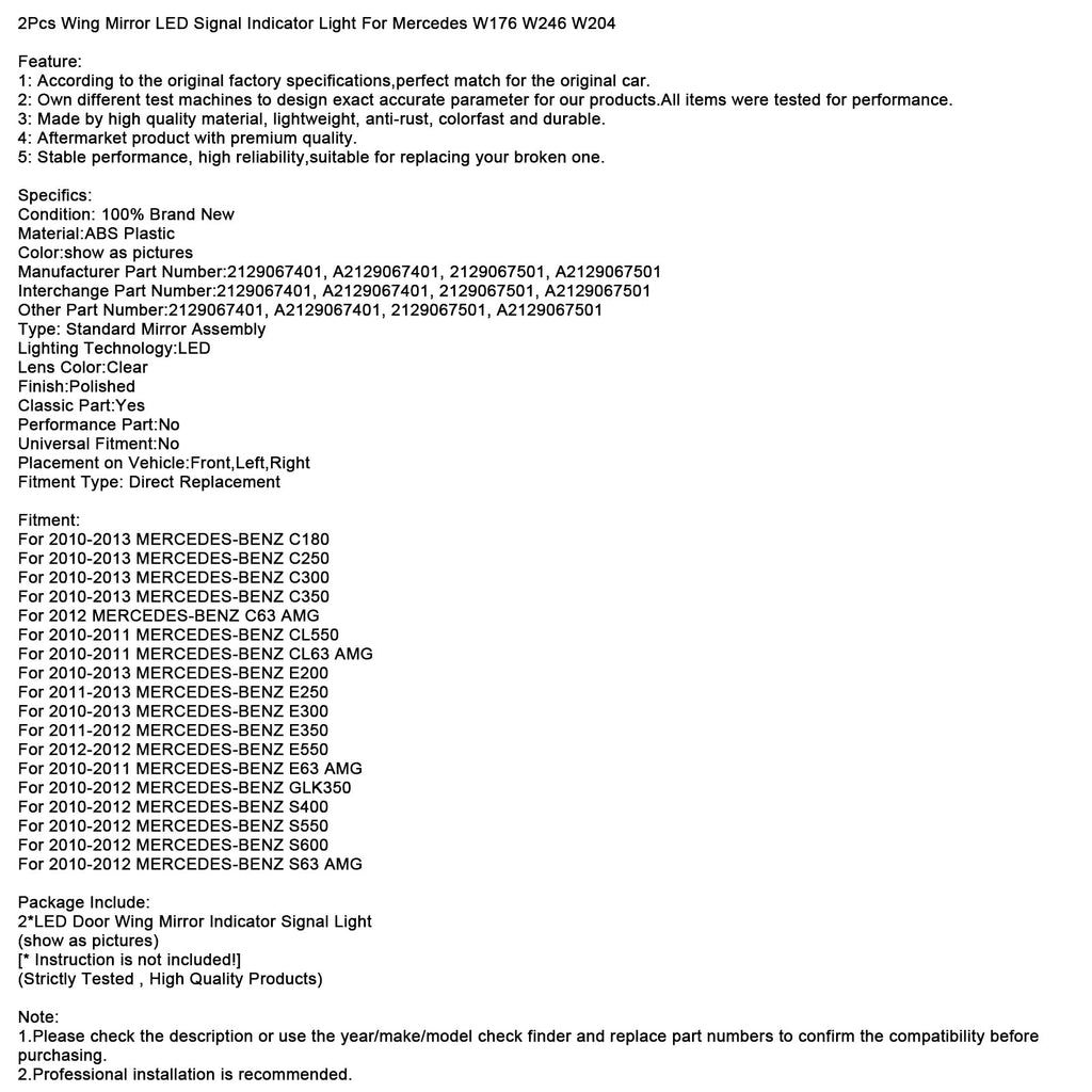 2Pcs Wing Mirror LED Signal Indicator Light For Mercedes W176 W246 W204