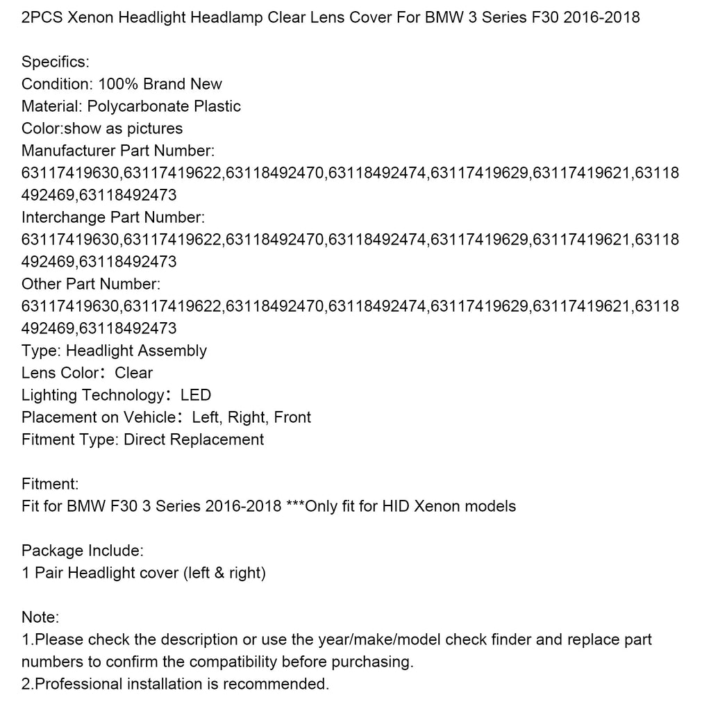 2PCS Xenon Headlight Headlamp Clear Lens Cover For BMW 3 Series F30 2016-2018