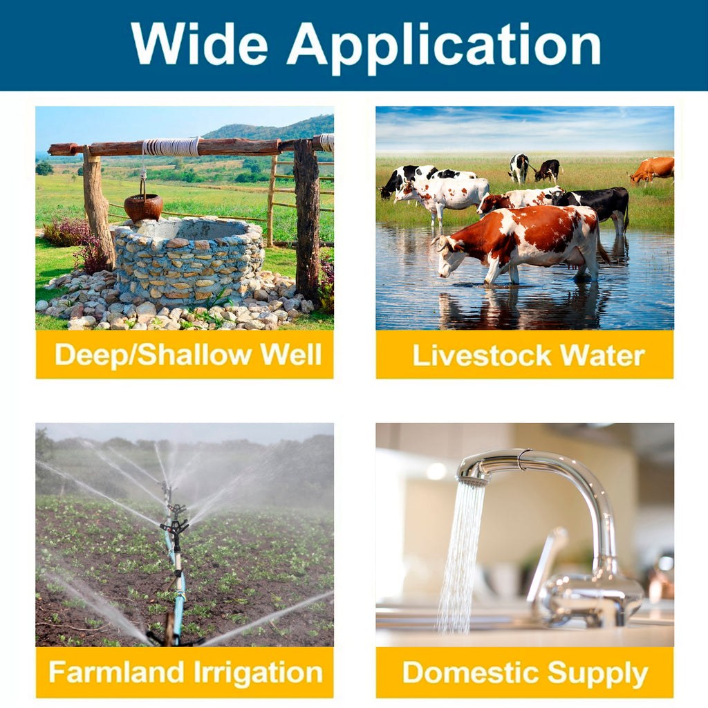 【Wide Application】: This Submersible Pump Is Ideal For Village, Family, Farm, Camping Car Water Supply, Ships, Fishing Boats, Fish Ponds, Agricultural Irrigation And Etc.