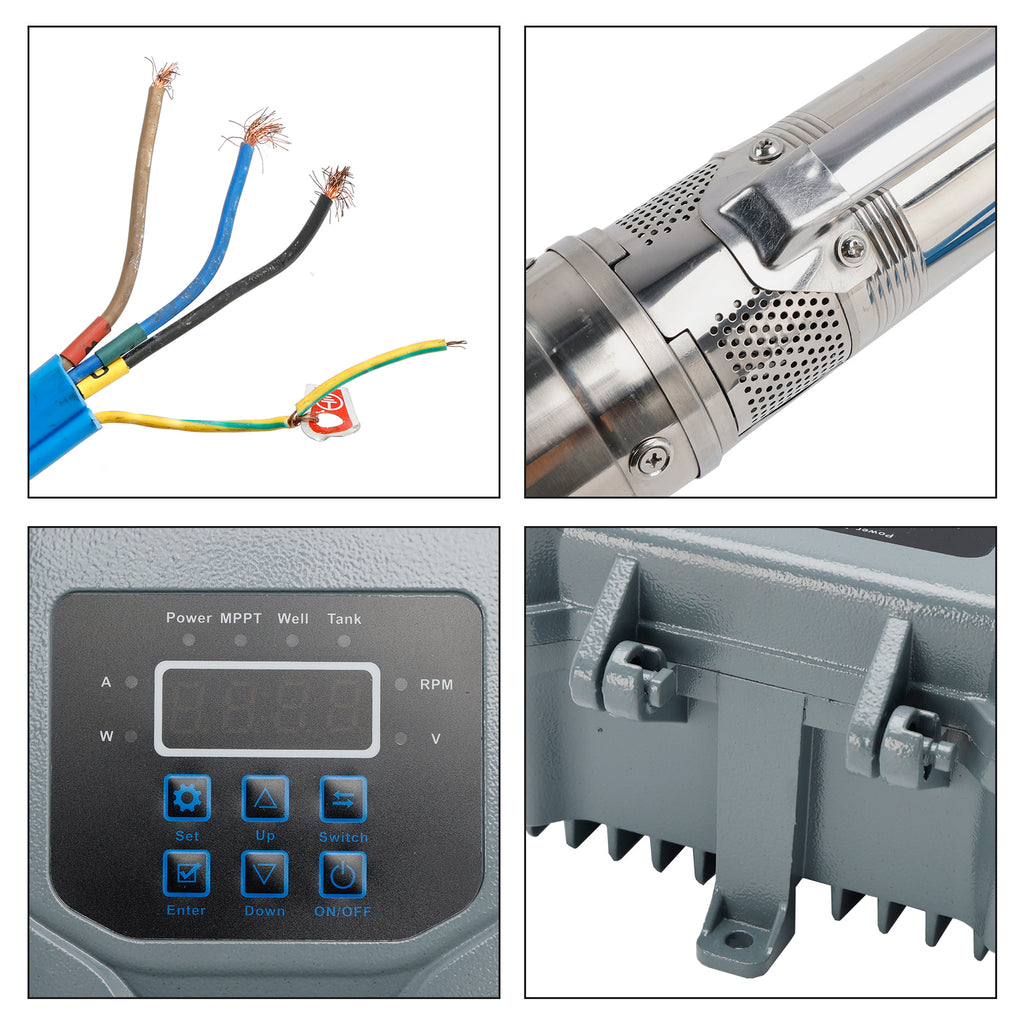 【Specification】: Solar Water Pump 48V DC,3 Inch Dia,6.7ft pure copper cable, Max head60M/197ft,5.5m³/h 1452 GPH Flow, PV open circuit voltage 42-100V with MPPT controller for farm, Garden, home, pool, Industrial