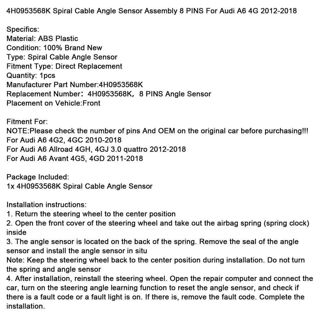 4H0953568K Spiral Cable Angle Sensor Assembly 8 PINS For Audi A6 4G 2012-2018