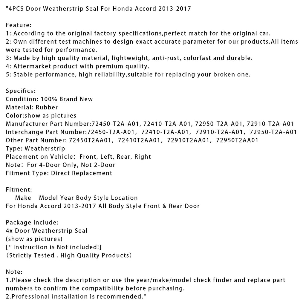 4PCS Door Weatherstrip Seal Fit For Honda Accord 2013-2017